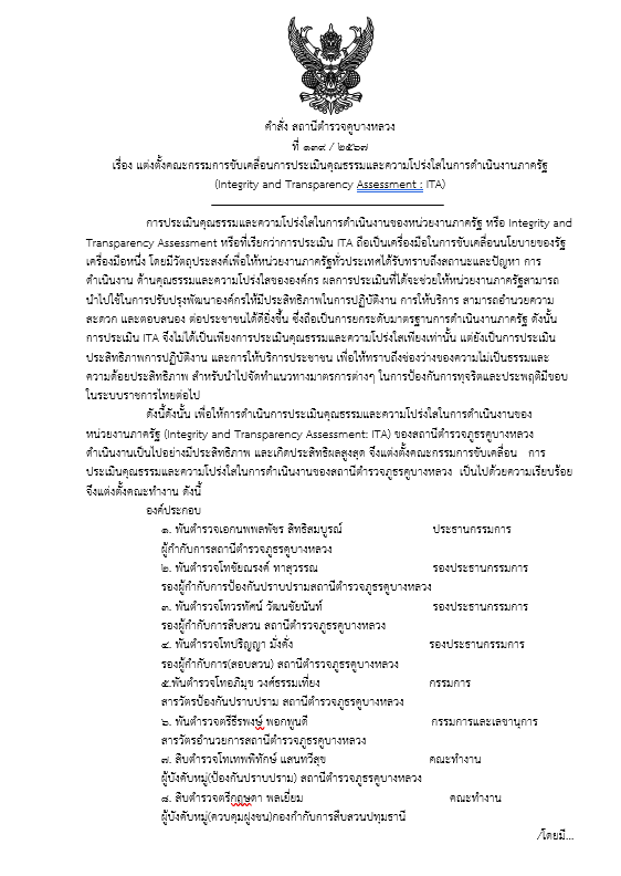 ที่   139/2567 ลง  20 ธ.ค.67 เรื่อง แต่งตั้งคณะทำงานขับเคลื่อนและกำกับติดตามการประเมินคุณธรรม